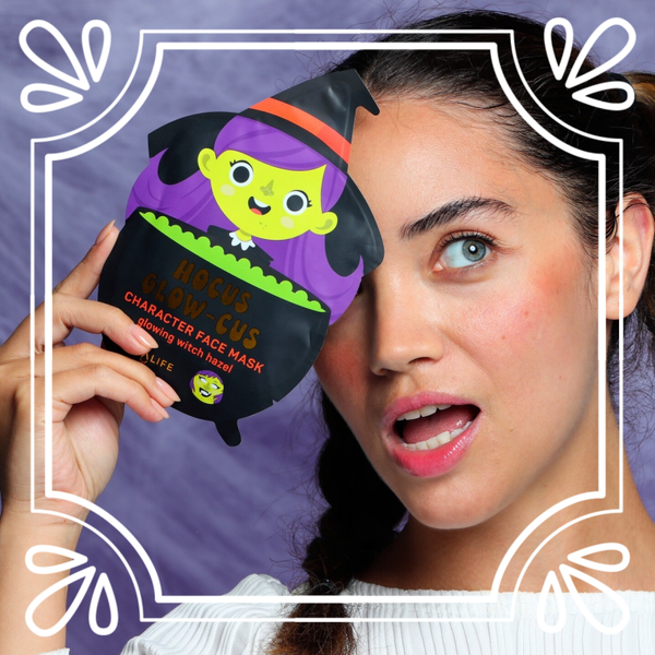 Masque en feuille coréen au design amusant, personnage au choix : Sorcière, momie ou chat.
