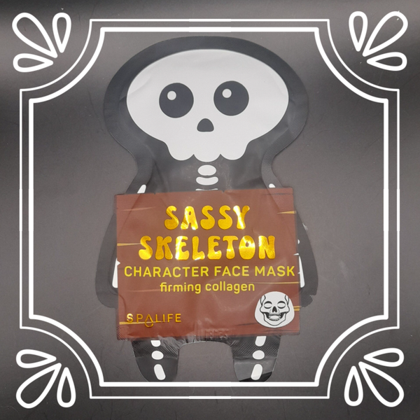 MASQUE SQUELETTE COQUIN : Eau (Aqua), Glycérine, Butylène Glycol, Copolymère PEG/PPG-17/6, Bétaïne, Hyaluronate de Sodium, Niacinamide, Huile de Ricin Hydrogénée PEG-60, Acrylates/C10-30 Alkyl Acrylate Crosspolymer, Arginine, Gomme Xanthane, Glycosyl Tréhalose, Beurre de Graine de Theobroma Cacao (Cacao), Caprylyl Glycol, Phénoxyéthanol, Acétate de Tocophéryle, Adénosine, Disodium EDTA, 1,2-Hexanediol, Tripeptide de Cuivre-1, Collagène, Chlorphénésine, Parfum (Fragrance), Palmitoyl Hexapeptide-12, Acetyl Hexapeptide-8. MASQUE FANTÔME GLAMOUR : Eau (Aqua), Glycérine, Butylène Glycol, Copolymère PEG/PPG-17/6, Niacinamide, Bétaïne, Hyaluronate de Sodium, Huile de Ricin Hydrogénée PEG-60, Acrylates/C10-30 Alkyl Acrylate Crosspolymer, Arginine, Allantoïne, Gomme Xanthane, Glycosyl Tréhalose, Extrait de Feuille de Murraya Exotica, Caprylyl Glycol, Phénoxyéthanol, Acétate de Tocophéryle, Disodium EDTA, 1,2-Hexanediol, Huile de Graine de Cannabis Sativa (HUILE DE CBD), Huile de Graine de Helianthus Annuus (Tournesol), Chlorphénésine, et Parfum (Fragrance). MASQUE CHIC FANG-TASTIC : Eau (Aqua), Glycérine, Méthylpropanediol, Copolymère PEG/PPG-17/6, Bétaïne, Huile de Ricin Hydrogénée PEG-60, Hyaluronate de Sodium, Arginine, Carbomère, Phénoxyéthanol, Allantoïne, Gomme Xanthane, Acide Hyaluronique, Acide Hyaluronique Hydrolysé, Collagène Hydrolysé, Glycosyl Tréhalose, Glycéreth-26, Acétate de Tocophéryle, Ethylhexylglycérine, Extrait de Fruit de Punica Granatum, 1,2-Hexanediol, Disodium EDTA, Chlorphénésine, et Parfum (Fragrance).